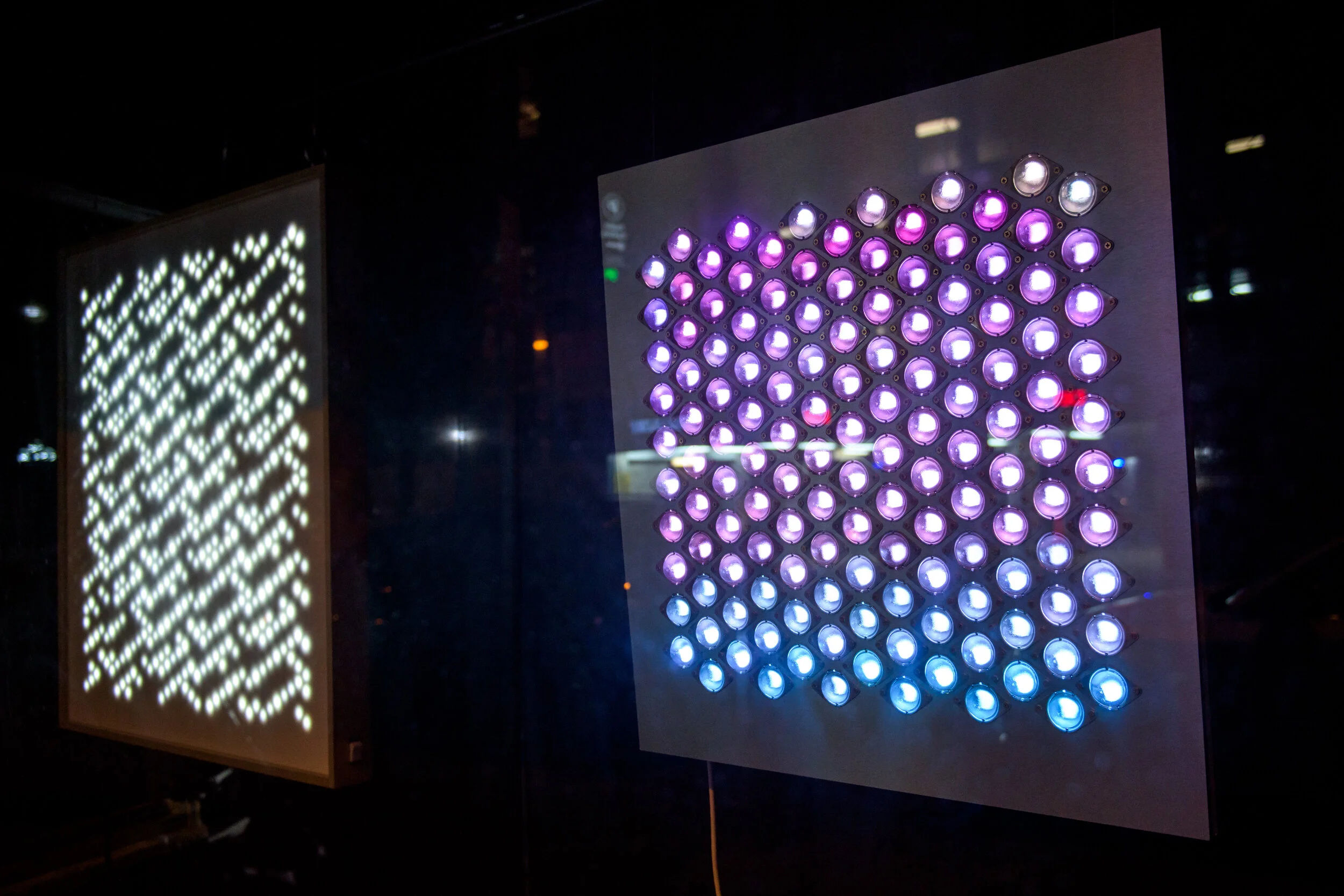 Hydra moves slowly but deliberately, generating palette fields which morph almost imperceptibly into one other. This project is my first to utilize a Raspberry Pi to run Processing, to build a digital simulation of the piece, run the simulation, analyze it, and then transmit the data to an Arduino, which ultimately controls the LEDs.